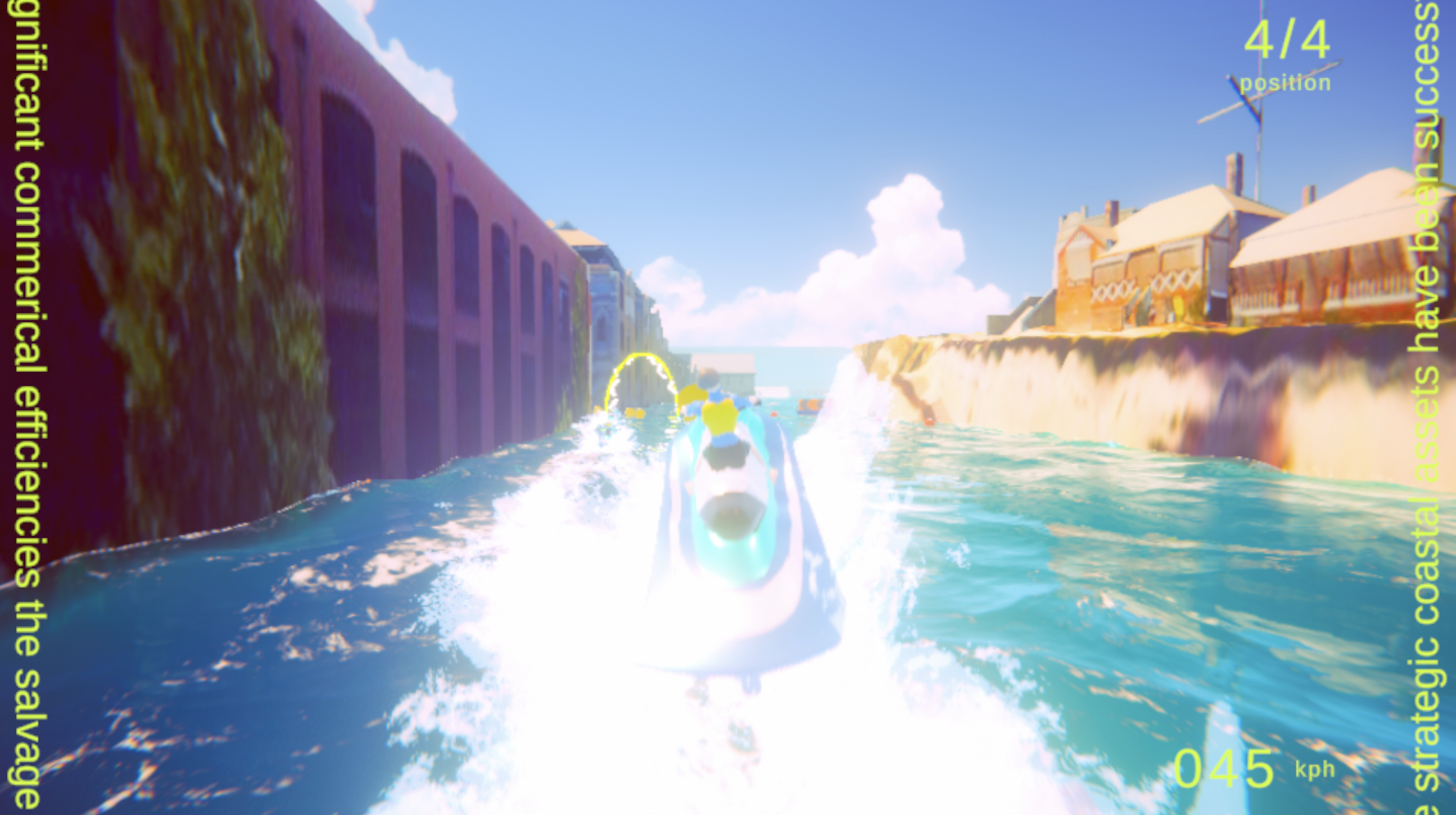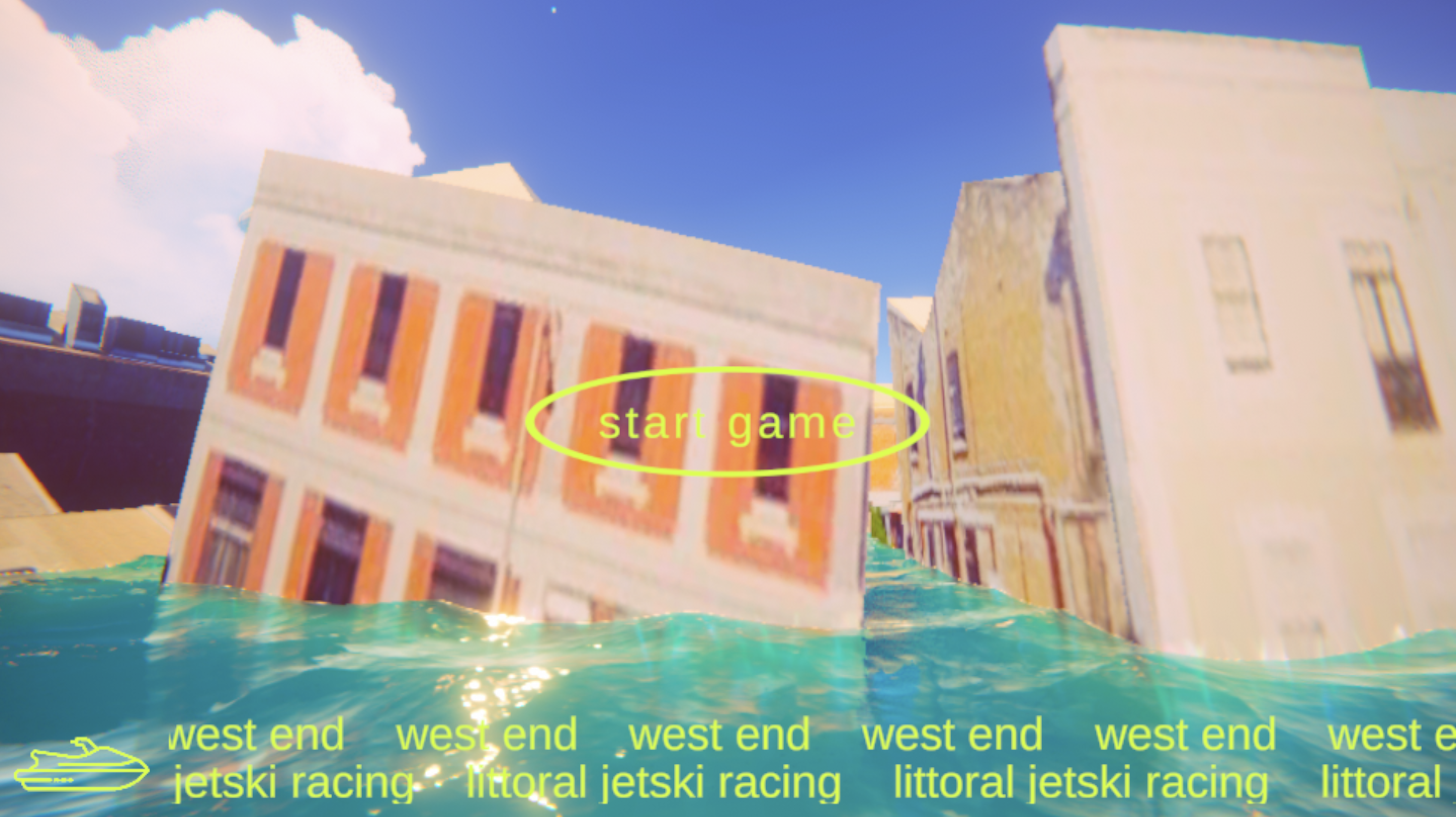 For the Fremantle Biennale, I created a jet ski racing video game set in the canals of a future, flooded Fremantle. Designed for a site-responsive brief, the artwork was installed in a landmark building in the West End. This area is less than 1 metre above sea level and likely to be underwater by 2100 – despite this, the building is currently being redeveloped for high-end hospo and is one of many recently bought by business magnates. I made the artwork as crass and unhinged as possible to reflect the psychology of this moment – our inability to think outside of a capitalist ethos, even as its deficiency is plain to see.